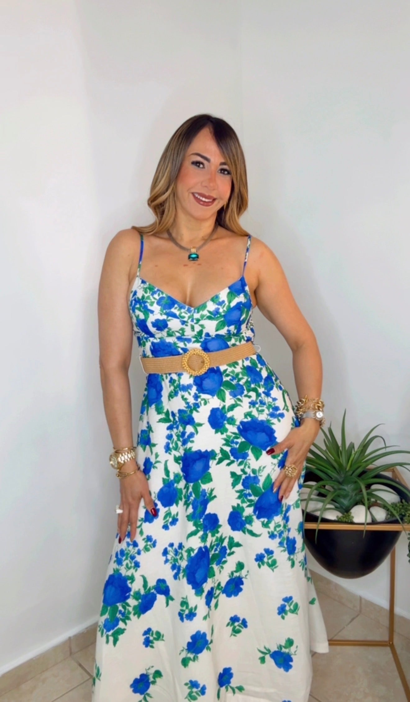 Multi Blue Elegant Midi Dress