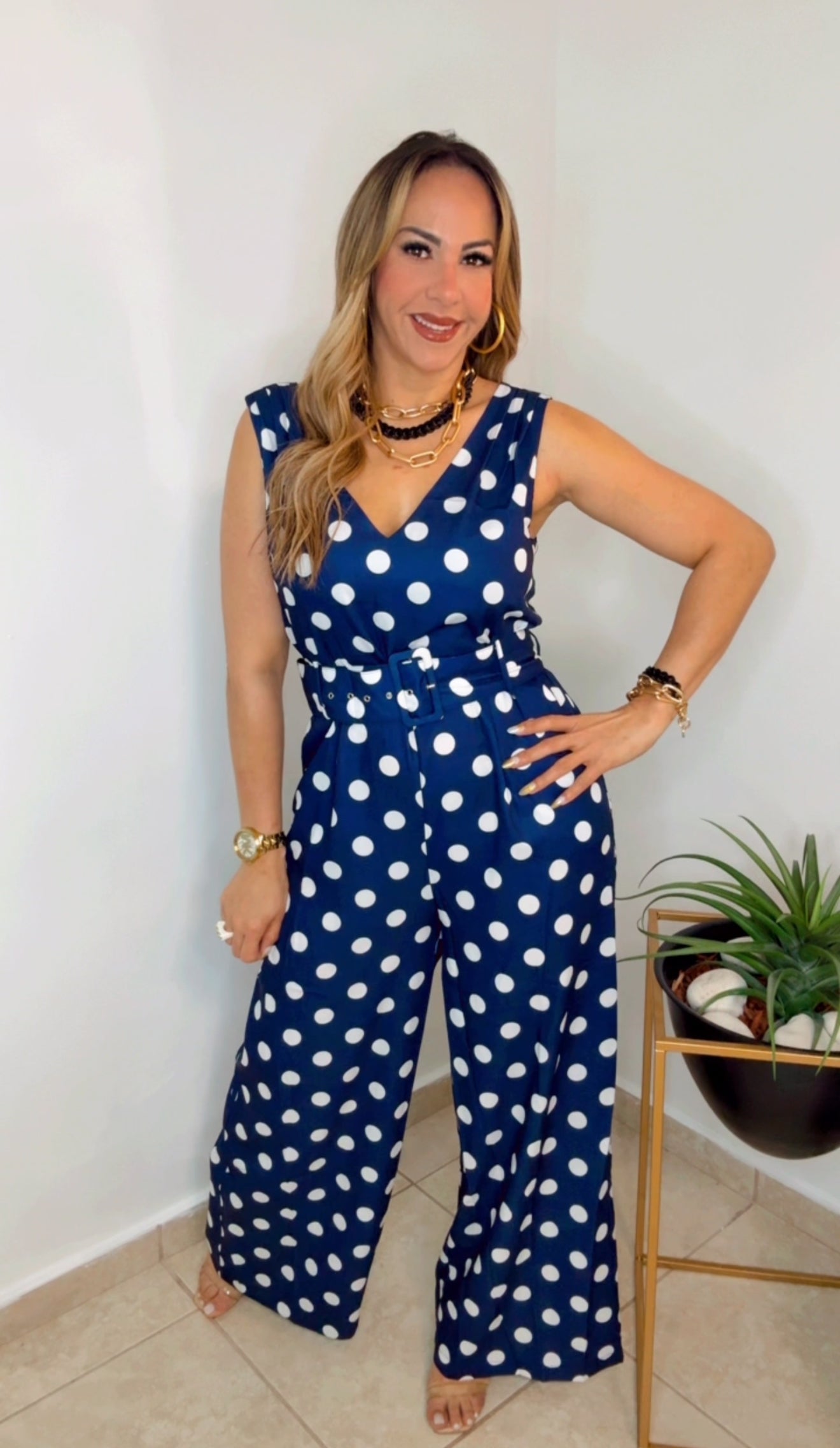 Navy Polka Dots Jumpsuit
